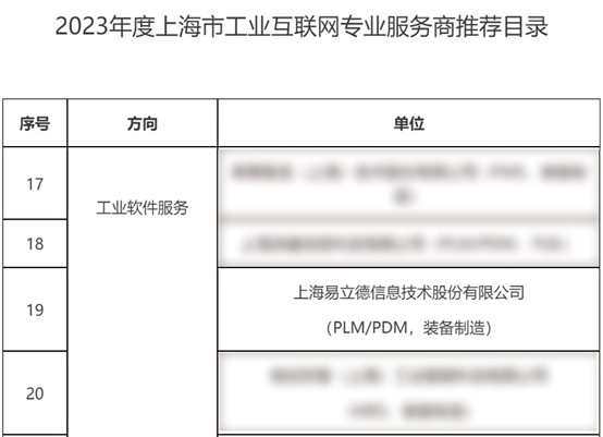 11月13日,上海市经信委公布了“2023年度上海市工业互联网专业服务商推荐目录”,易立德凭借多年赋能装备制造、高科技电子、能源光伏等行业数字化转型的成功经验入选工业软件服务推荐目录。